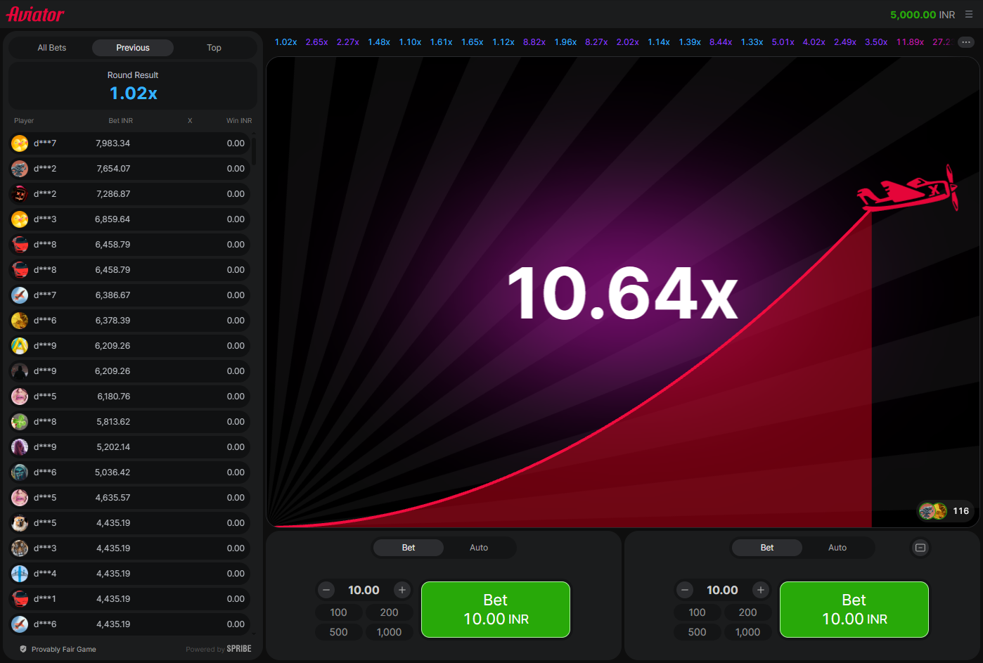 Aviator is an unpredictable game. The rounds can either ascend to astonishing altitudes of x100+ or crash down to x1.01 in a matter of seconds. Players could cash out before the ‘plane’ disappears in which rests their chance of losing both the multiplier and the bet.